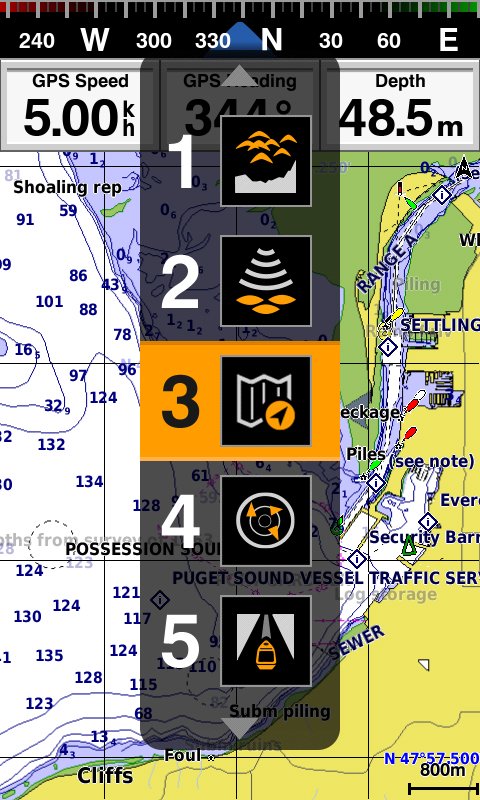 - Sonar tradisional CHIRP 600 W (RMS) dan sonar pemindaian CHIRP ClearVü bawaan menghasilkan gambar yang lebih jelas tentang apa yang ada di bawah kapal dalam bentuk citra yang menyerupai foto dengan menampilkan objek, struktur, dan ikan.